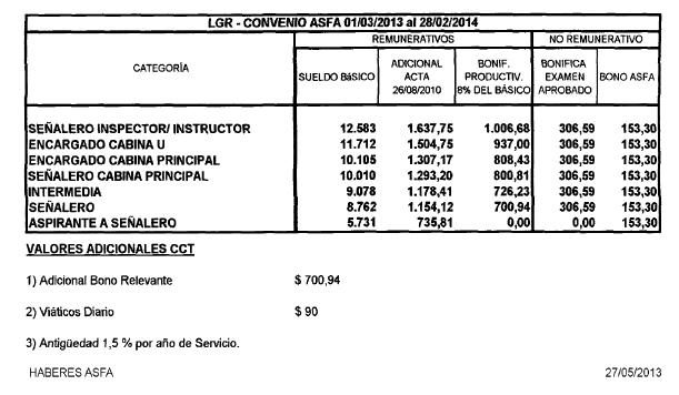 LINEA GRAL. ROCA - ASFA - ESCALAS SALARIALES 2013