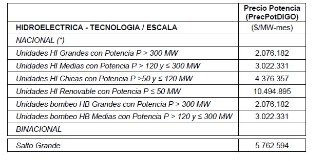 3.3 Precios de potencia – Hidroeléctrica