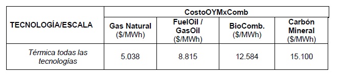 los costos variables no combustibles [CostoOYMxComb] indicados en la