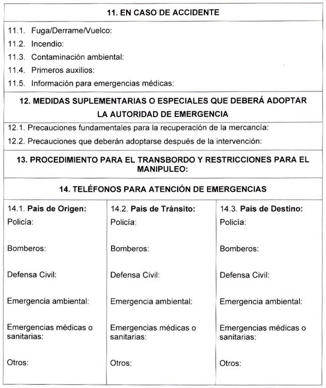 peligrosas en el MERCOSUR deben portar una Ficha de Emergencia con la