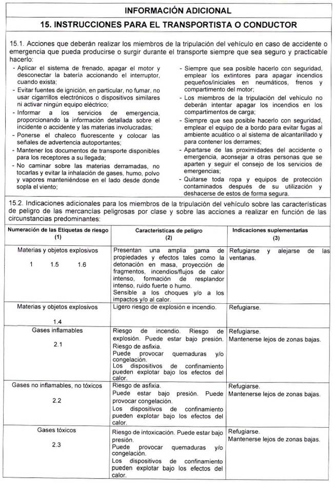 DE EMERGENCIA PARA EL TRANSPORTE POR CARRETERA DE MERCANCÍAS PELIGROSAS