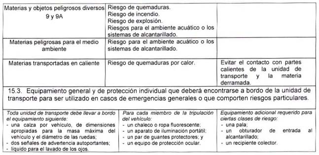 Capítulo 3.2 del Anexo II “Normas Técnicas para el Transporte