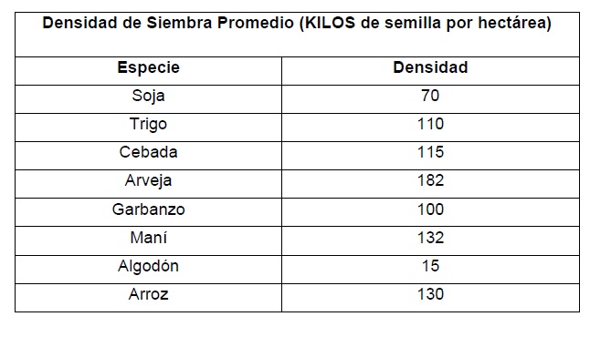 fines de estimar la cantidad de semilla utilizada por los productores