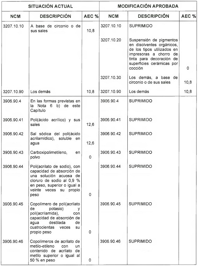 correspondiente Arancel Externo Común aprobadas por la presente