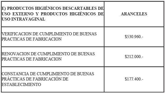 de uso externo y productos higiénicos de uso intravaginal y a las