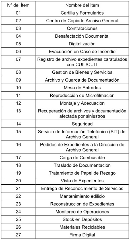 - Archivos a utilizar, en cuanto a contenido, responsable, período de