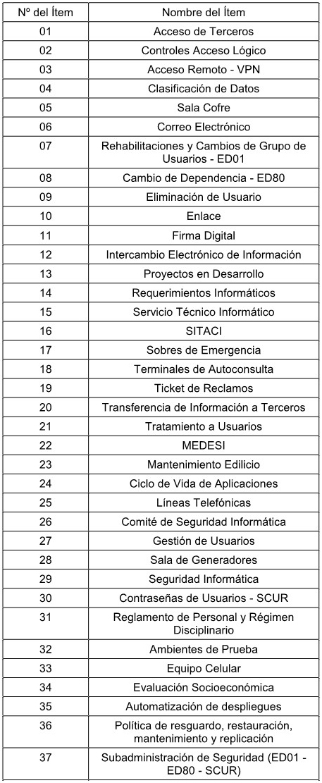 revisión y conformidad de la Norma de Procedimiento. Ellas son:
