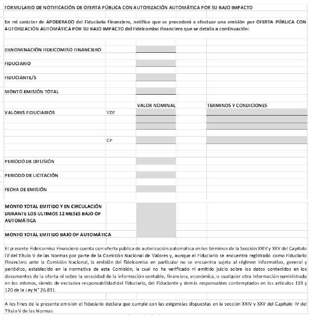 FORMULARIO DE NOTIFICACIÓN DE OFERTA PÚBLICA CON AUTORIZACIÓN