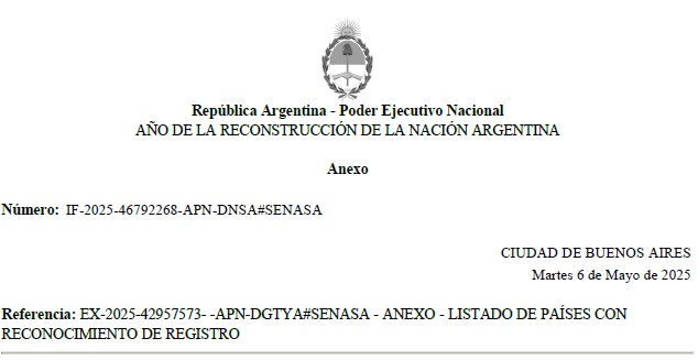Resolución N° RESOL-2025-333-APN-PRES#SENASA a los países socios