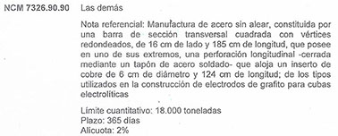 República Argentina, para el siguiente ítem arancelario con las