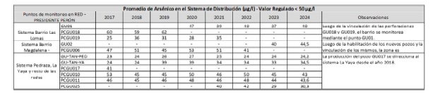 regularización de la calidad de arsénico en esta zona, se llevó a cabo