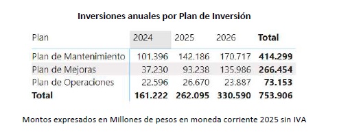 y gastos operativos y de inversiones de mejora y mantenimiento. Este