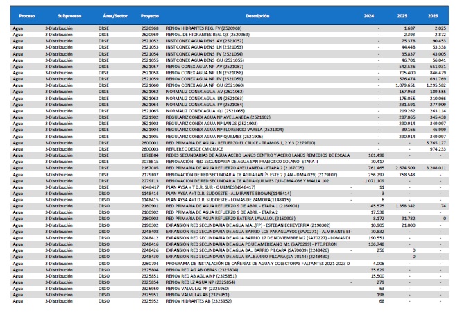 2017 se trabajó en la mejora de la distribución de agua (realización de