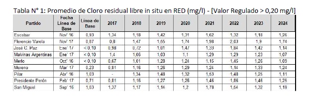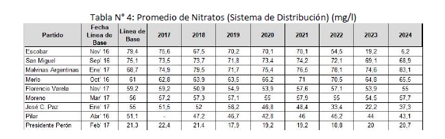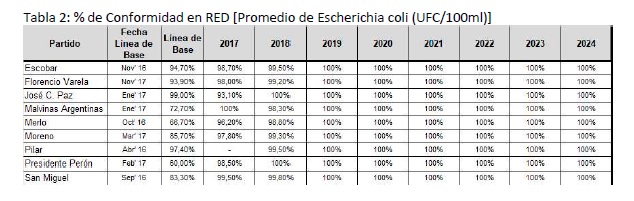 Tabla 4: Estado de situación del parámetro Arsénico en Redes de Presidente Perón, actualizado a diciembre 2024.