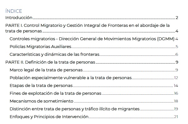 DE TRATA DE PERSONAS EN PASOS FRONTERIZOS” y sus respectivos anexos.