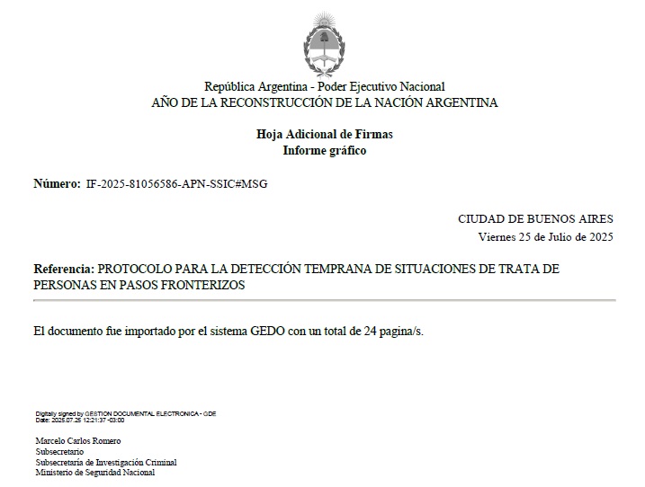 Que el MINISTERIO DE SEGURIDAD NACIONAL ha firmado junto con la