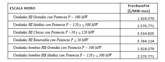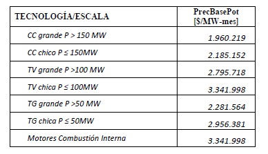 Se define al Precio Base para remunerar la Potencia a los valores
