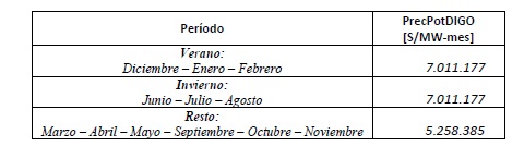 (DIGO), es la remuneración de la potencia disponible de la
