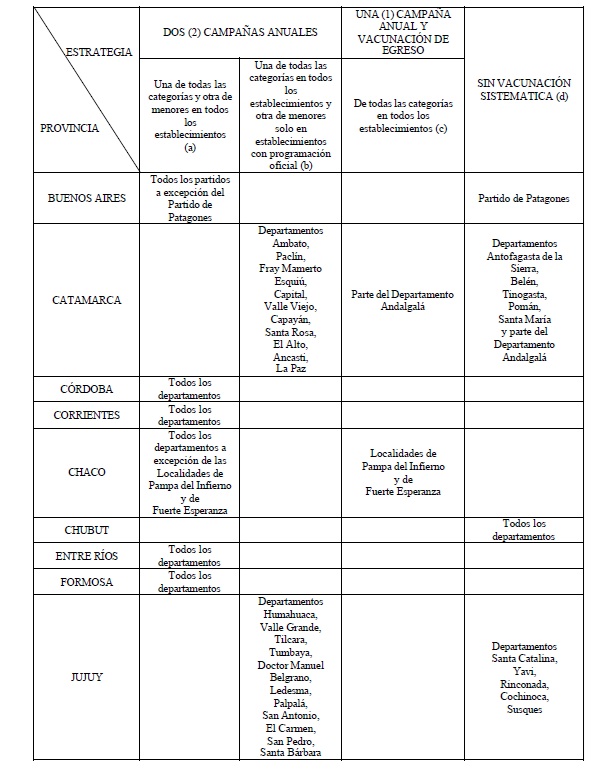 del referido Servicio Nacional, se fijan las estrategias de vacunación