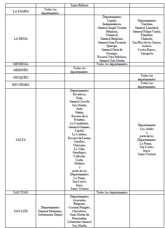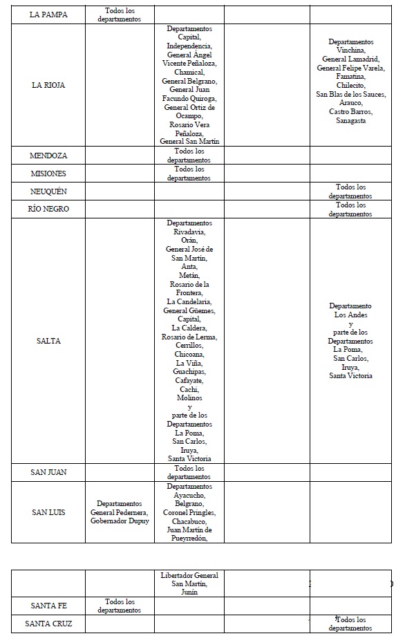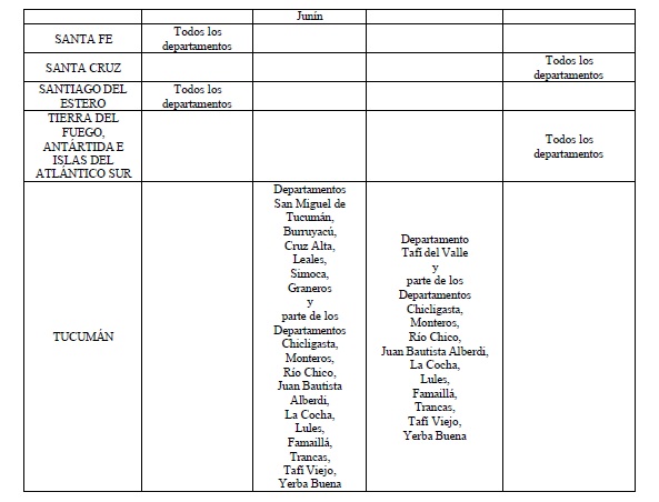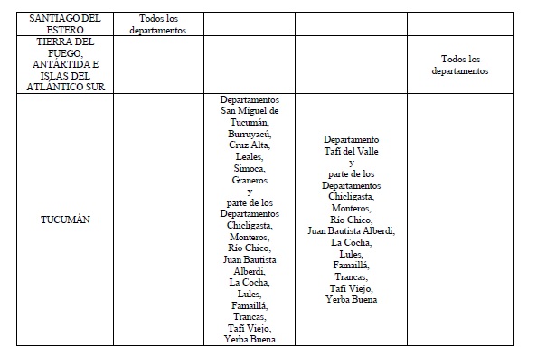 zonificación del Territorio Nacional al solo efecto del movimiento de