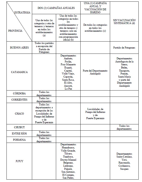 antiaftosa para bovinos y bubalinos en todo el Territorio Nacional.