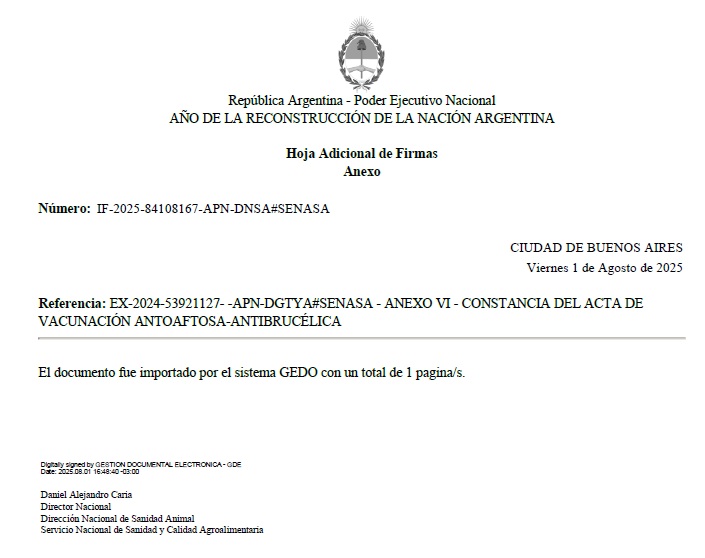 “Constancia del acta de vacunación antiaftosa/antibrucélica registrada