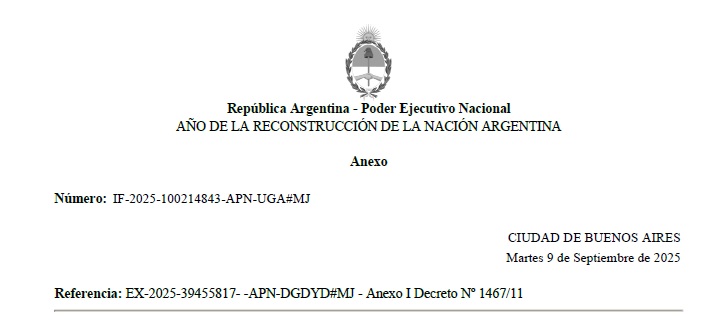 el ANEXO I del Decreto N° 1467 del 22 de septiembre de 2011 y su