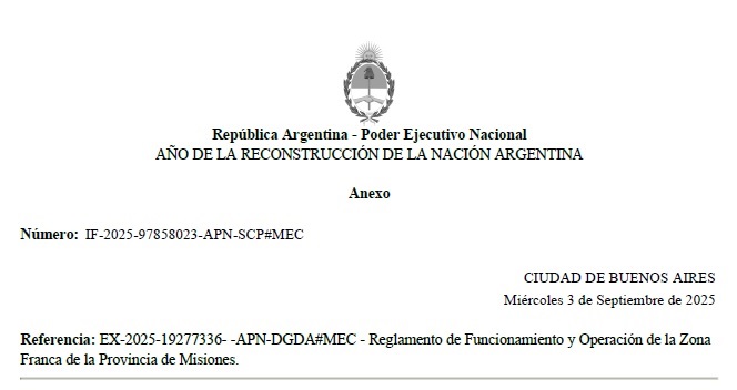 ZONA FRANCA: Porción del territorio de la Provincia de MISIONES,