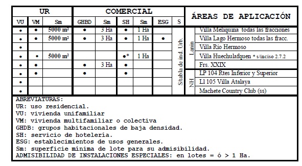 2.1 USOS ADMISIBLES- SUPERFICIES MÍNIMAS PARA USO COMERCIAL