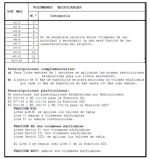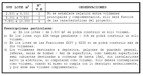 4.4 DENSIDAD DE EDIFICACIÓN: Se podrá construir más de un volumen edificable con ajuste a las prescripciones descriptas en el siguiente cuadro: