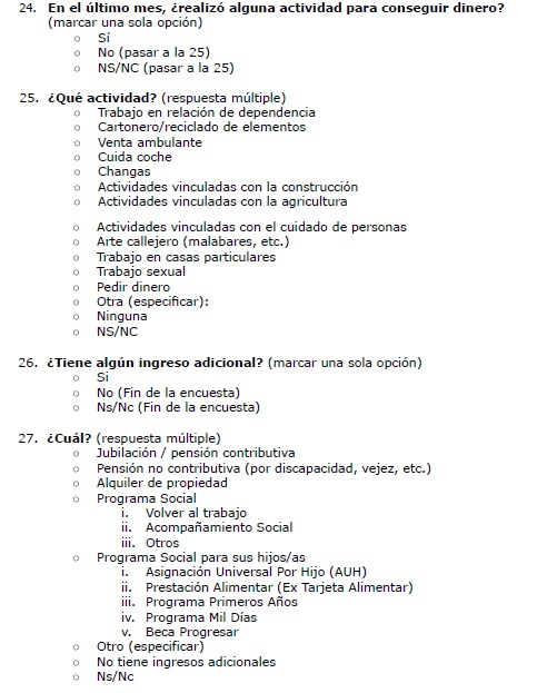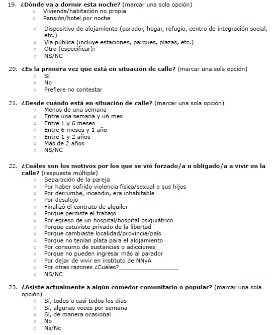 Una persona será considerada en situación de calle e incluida en el relevamiento si: