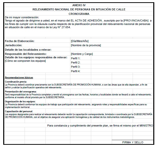 A los fines de la implementación del Relevamiento Nacional de Personas