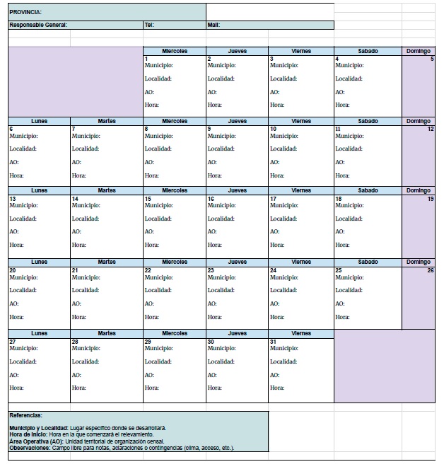 geográficas a relevar y la asignación de recursos humanos involucrados.