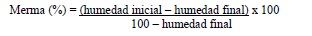FÓRMULA PARA EL CÁLCULO DE LA MERMA POR HUMEDAD: