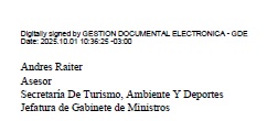TURISMO, AMBIENTE Y DEPORTES, o el área que en un futuro la reemplace,