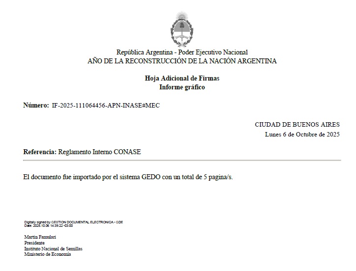 REGLAMENTO INTERNO DE LA COMISIÓN NACIONAL DE SEMILLAS