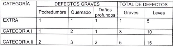 los defectos graves es la siguiente: podredumbre, daño profundo y