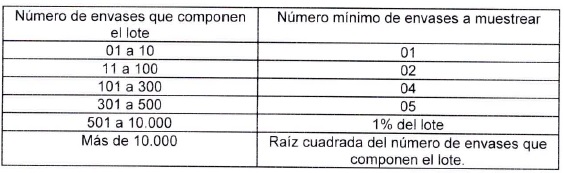 10.1.1.1 - En caso de obtenerse un número de envases entre uno (1) y