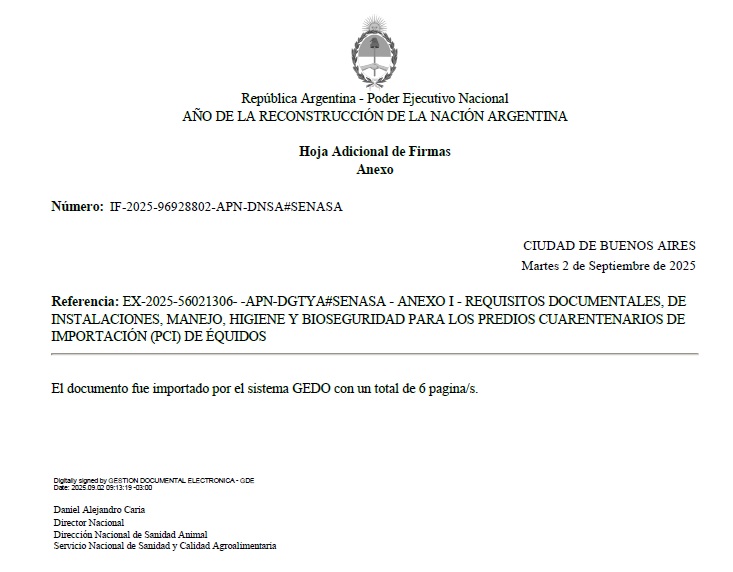 Cuarentena y Prevención, actual Dirección de Comercio Exterior Animal,