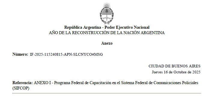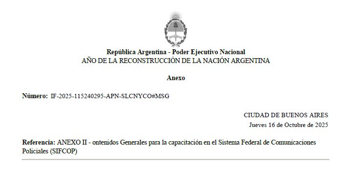 Federal de Comunicaciones Policiales a la entonces SECRETARÍA DE