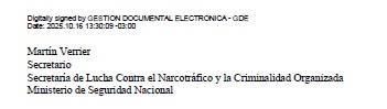 la SECRETARÍA DE LUCHA CONTRA EL NARCOTRÁFICO Y LA CRIMINALIDAD