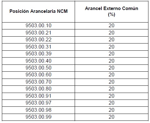 distinta del Arancel Externo Común (A.E.C.) a determinados juguetes
