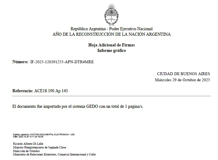 N° 18 (ACE N° 18), de acuerdo a lo dispuesto en el articulo 18 del