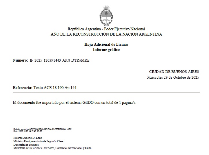 N° 18 (ACE N° 18), de acuerdo a lo dispuesto en el artículo 18 del
