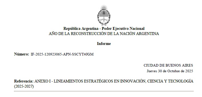 ciencia, tecnología e innovación en Argentina. Esto incluye la
