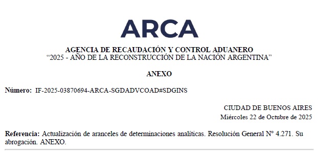 Actualización de aranceles de determinaciones analíticas. Resolución