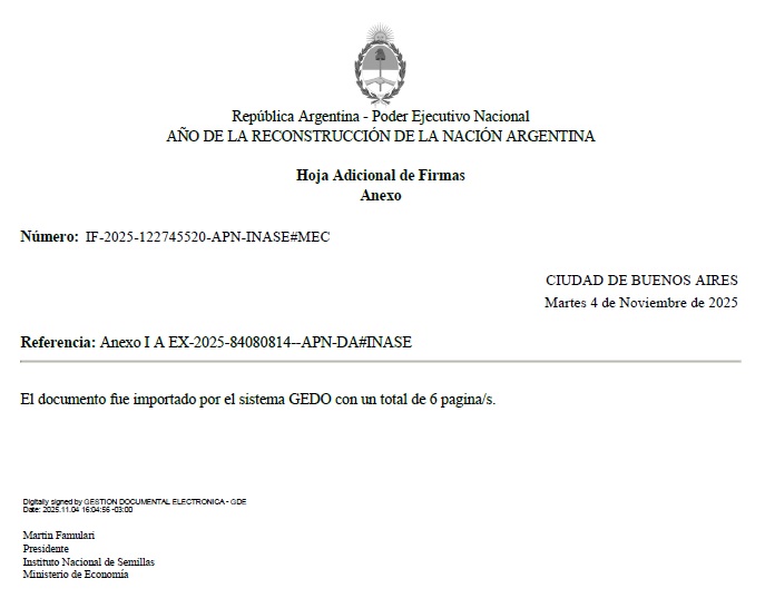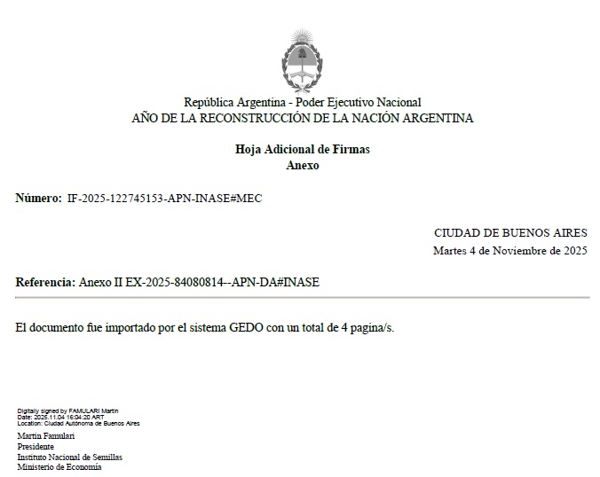 El INSTITUTO NACIONAL DE SEMILLAS definirá las especies, el tipo de
