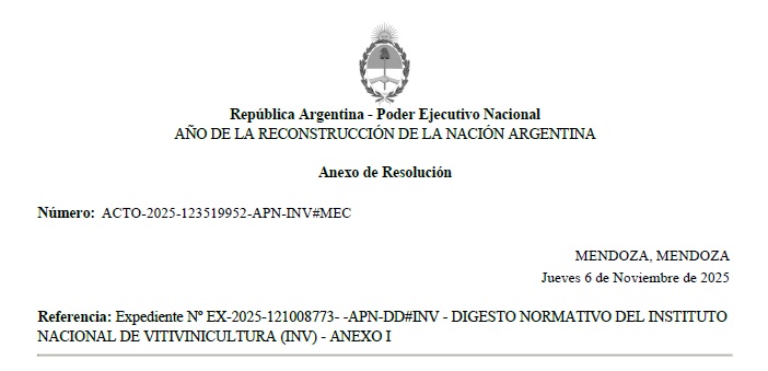DIGESTO NORMATIVO DEL INSTITUTO NACIONAL DE VITIVINICULTURA (INV)