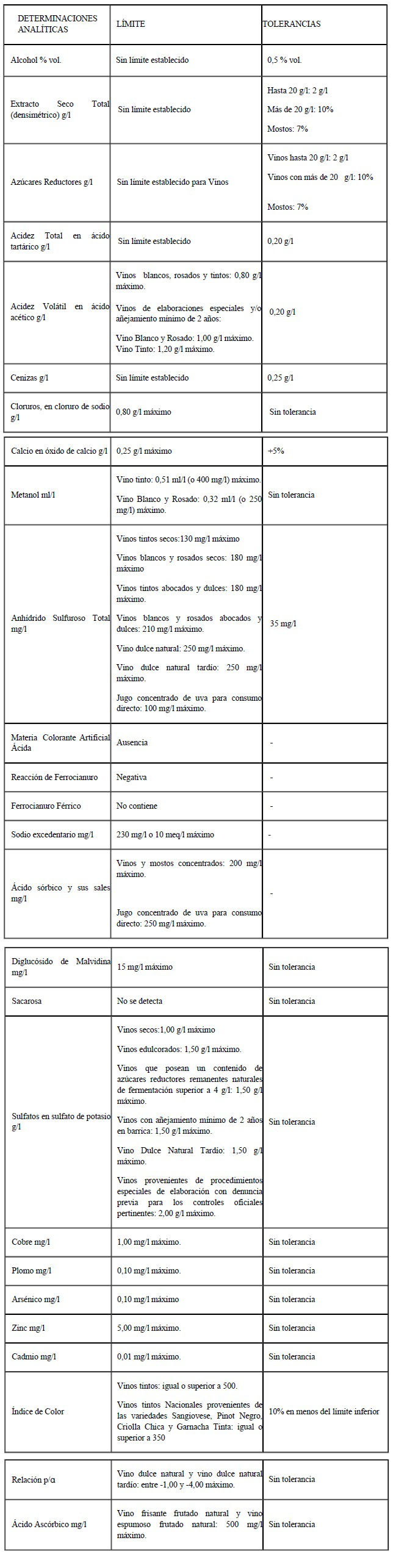 EL VINO (OIV), y las adicionales establecidas por el INV.