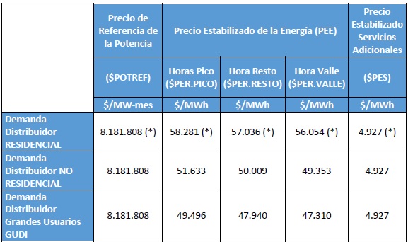 (*) Los Precios Estacionales de la Energía aquí consignados